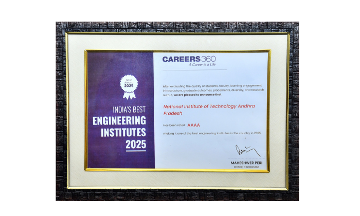 National Institute of Technology Andhra Pradesh established in the year 2015 is an Institute of National Eminence and is the Youngest (31st) institution among the chain of NITs started by the Government of India under the aegis of Ministry of Education. Currently the Institute is offering B.Tech., M.Tech. and Ph.D. programmes.
