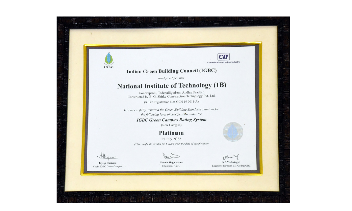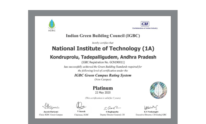 The permanent campus was established in 172.6 acres of land adjacent to Chennai-Kolkata Highway (NH-16) in the historical air-strip lands of Tadepalligudem. The Institute has started its full operations in the permanent campus from January 2020. The campus is extremely well connected by road, by rail and by air. The Vijayawada Airport is 110 km away while Rajamahendravaram Airport is 50 km away from the campus.