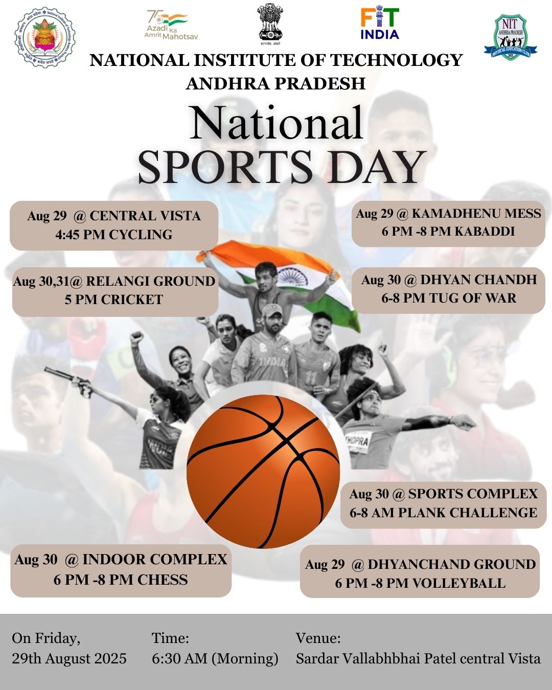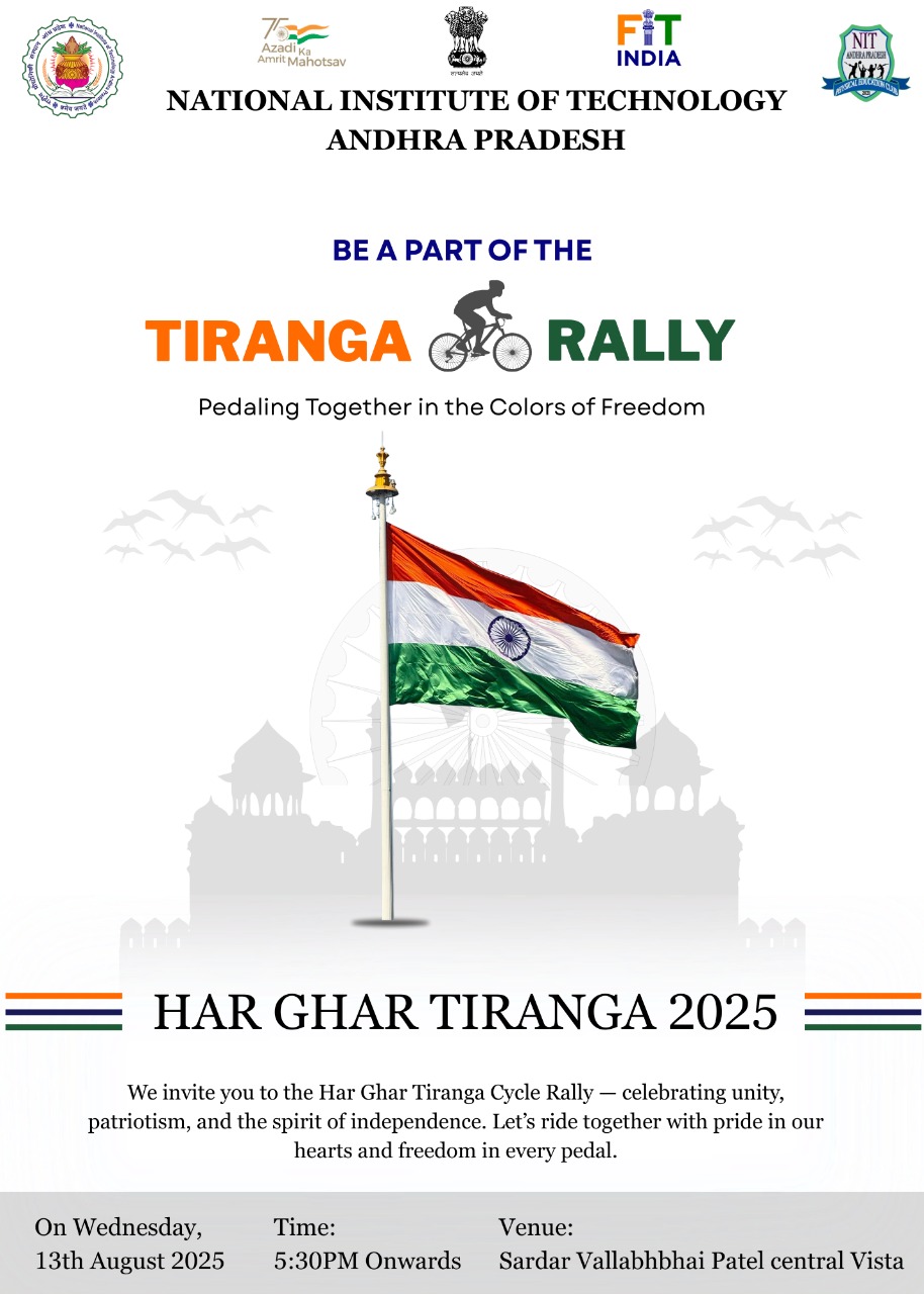 - Physical Education Club of NIT ANP is conducting a Trianga Cycle Rally on 13th Aug 2025 (Today) in connection to Har Ghar Tiranga campaign from 13th to 15th August 2025