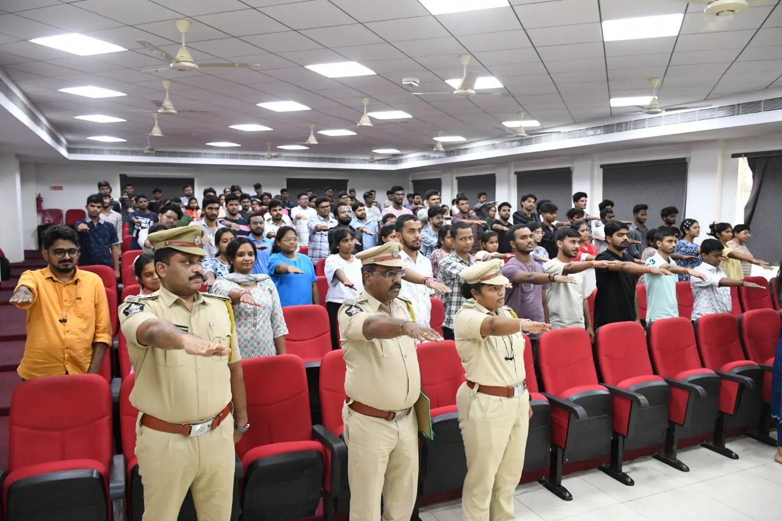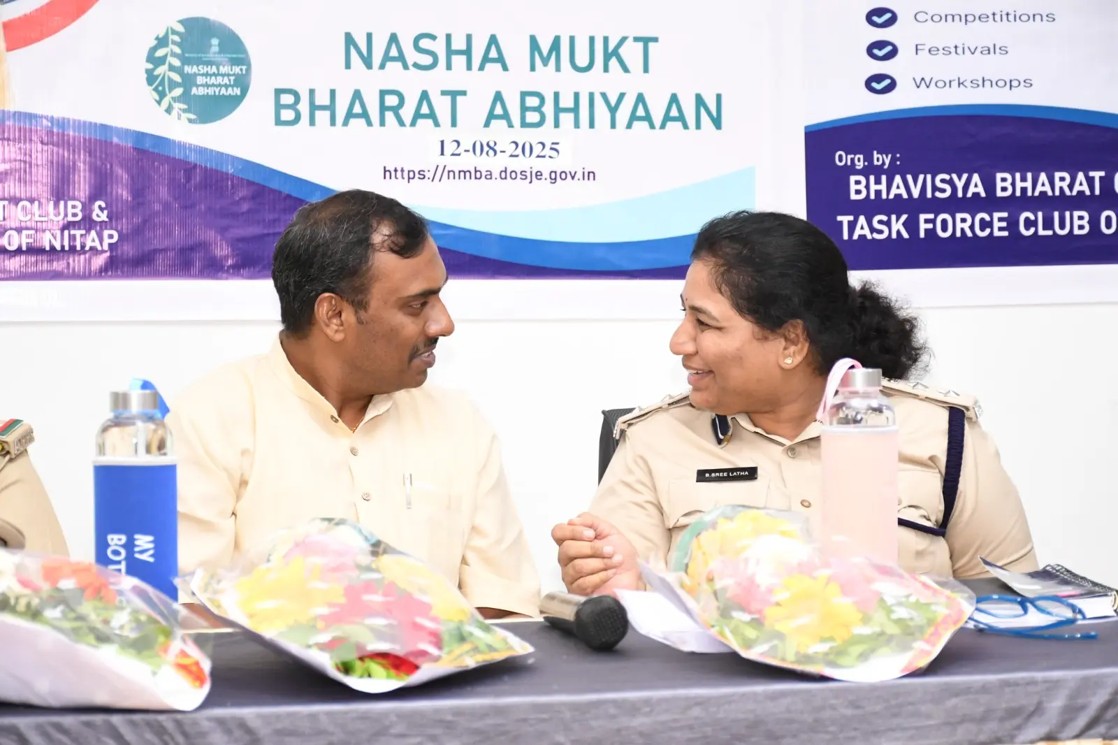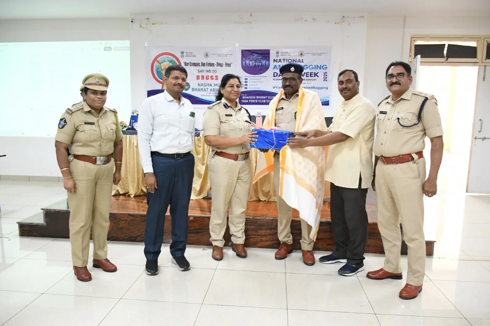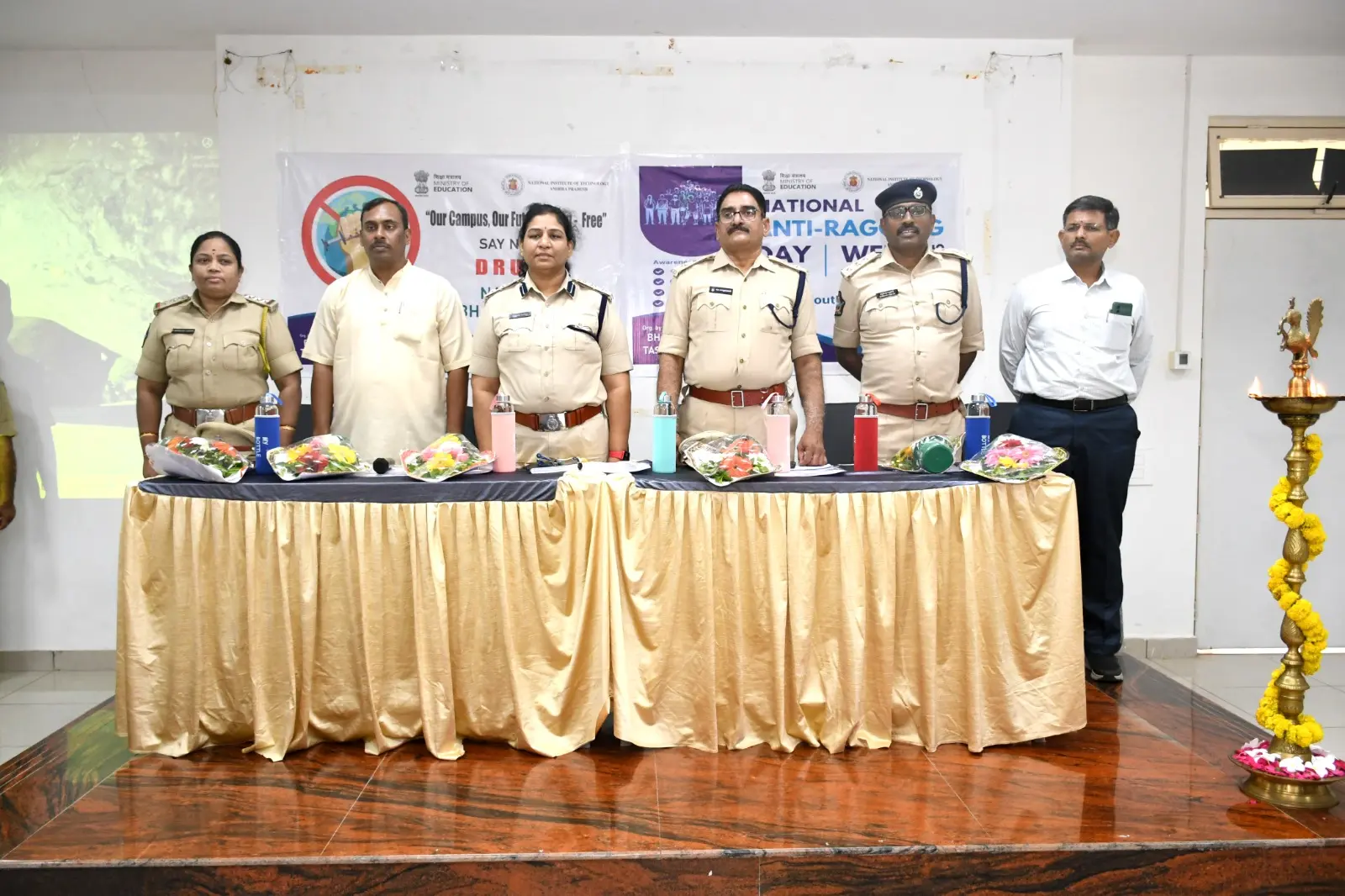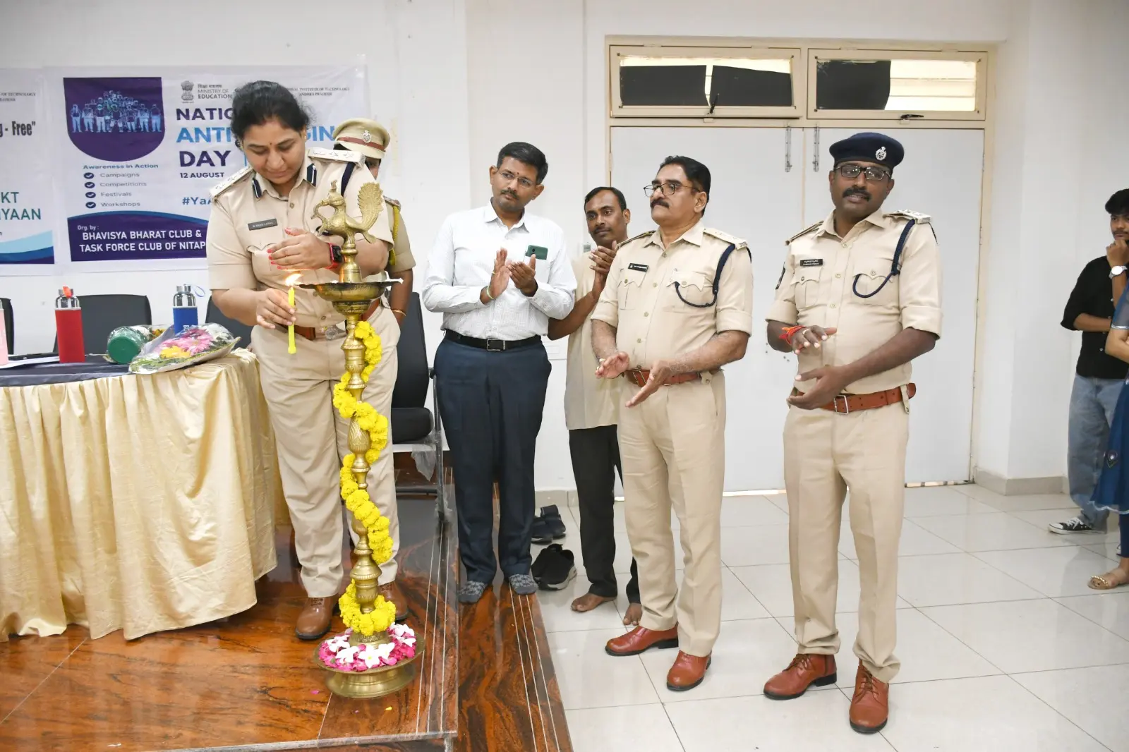 The Bhavisya Bharat Club of NIT Andhra Pradesh organized an awareness program on Anti-Ragging and Nasha Mukt Bharat Abhiyaan. Smt. Boyapati Sri Latha Garu, Sri KVN Prabhu Kumar Garu, and Sri Dharmavarapu Viswanath Garu addressed the students, encouraging them to help build a safe and drug-free campus.